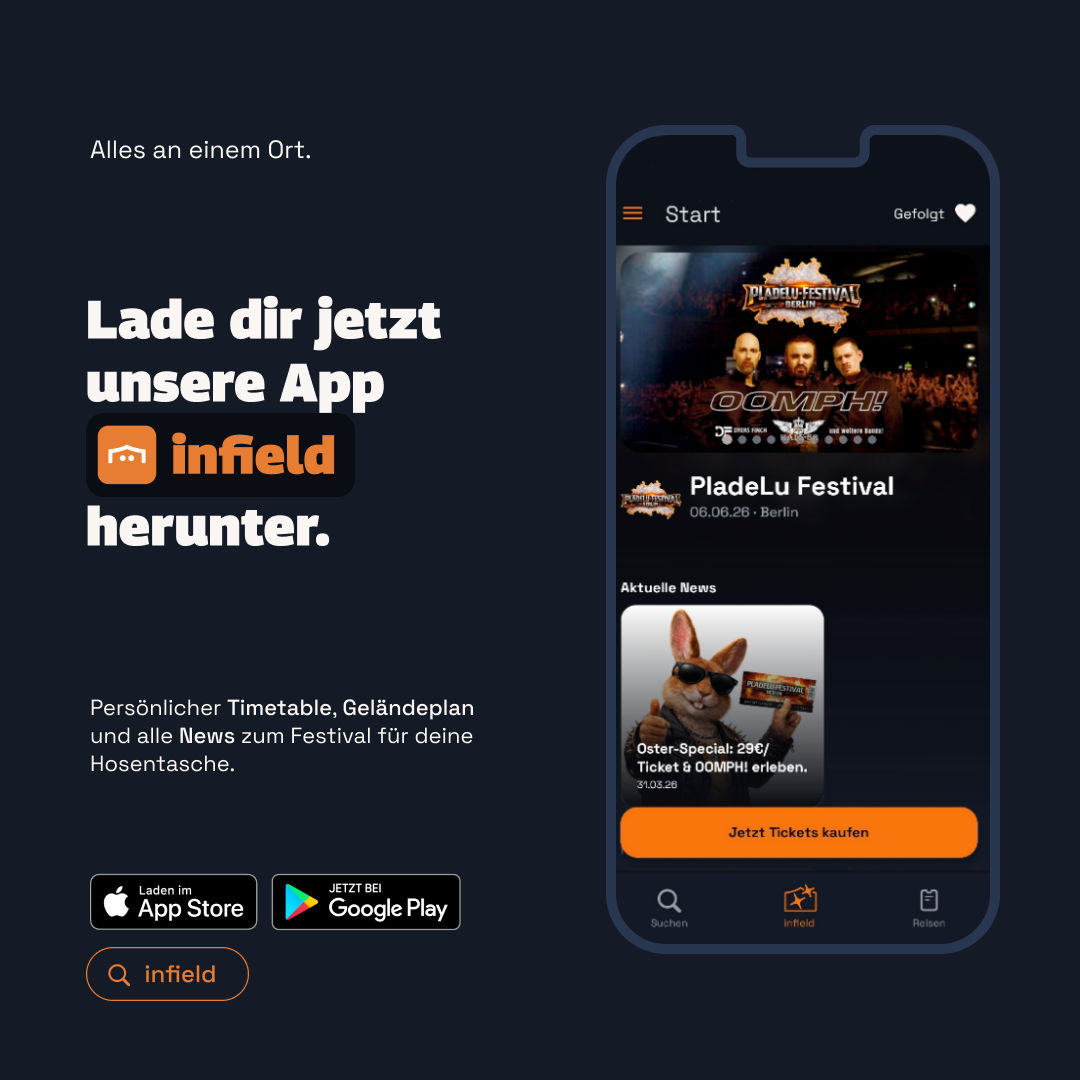 Außerdem profitiert ihr von unserer mobilen infield-App, in der ihr euer Ticket speichern und alle Infos zum Festival mit News direkt im Handy dabei habt. Einfach unser Festival als Favoriten in der App wählen und schon seid ihr mit uns connected.